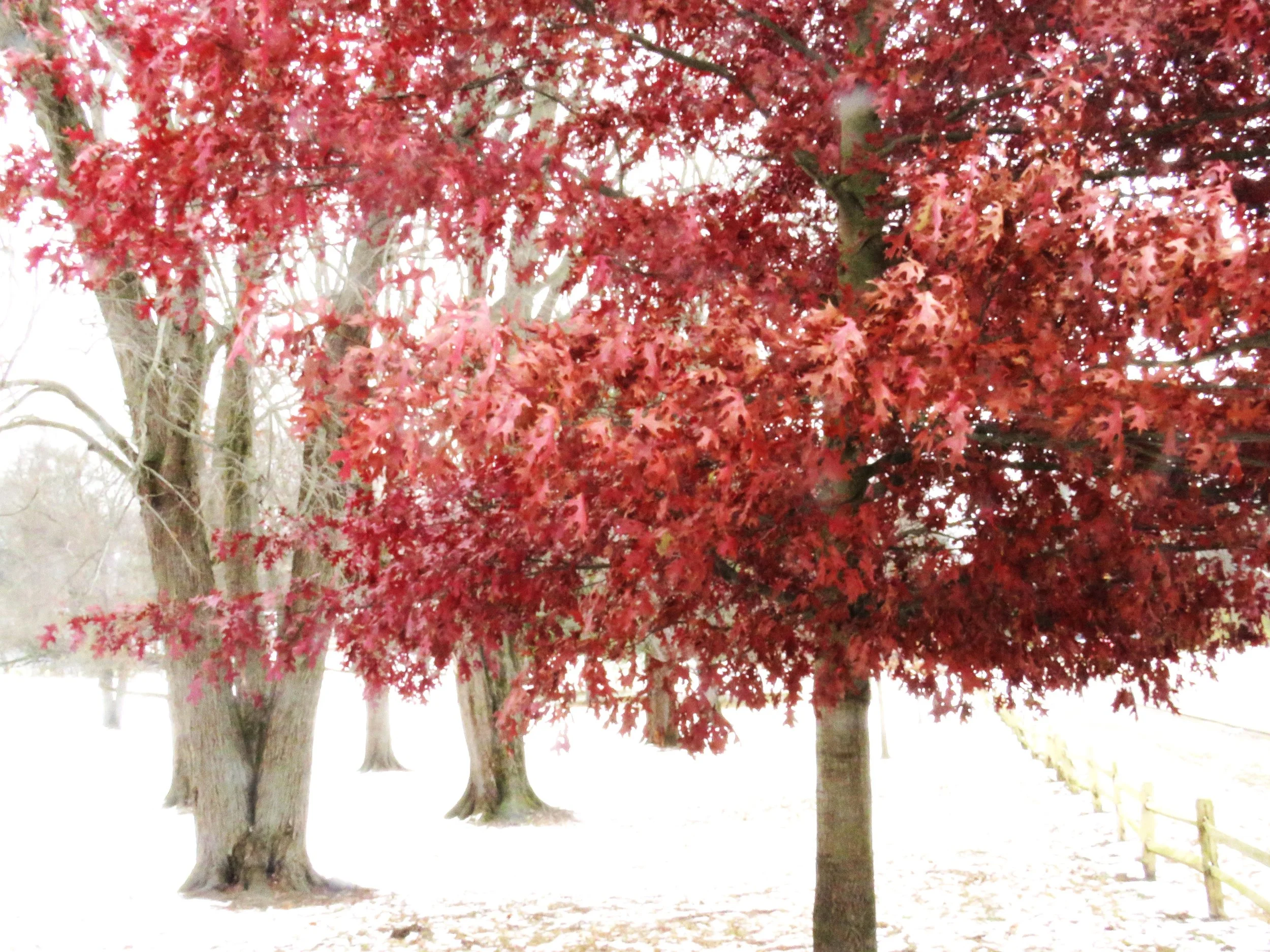 In Terre Haute, I continued my search in one of our favorite local parks, much to the chagrin of my family when I stopped again and again to take photos of oak leaves. Plenty of different oak leaves, but no scarlet oaks. The next day, we visited another local park, and there we hit the jackpot! A row of scarlet oaks fully justified their name by displaying their foliage against a snow-covered parkland. It was worth waiting for!