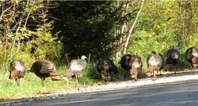 October 24, 2019. I came across a dozen turkeys grazing along the side of Valley Vista Road in Sugar Hill.