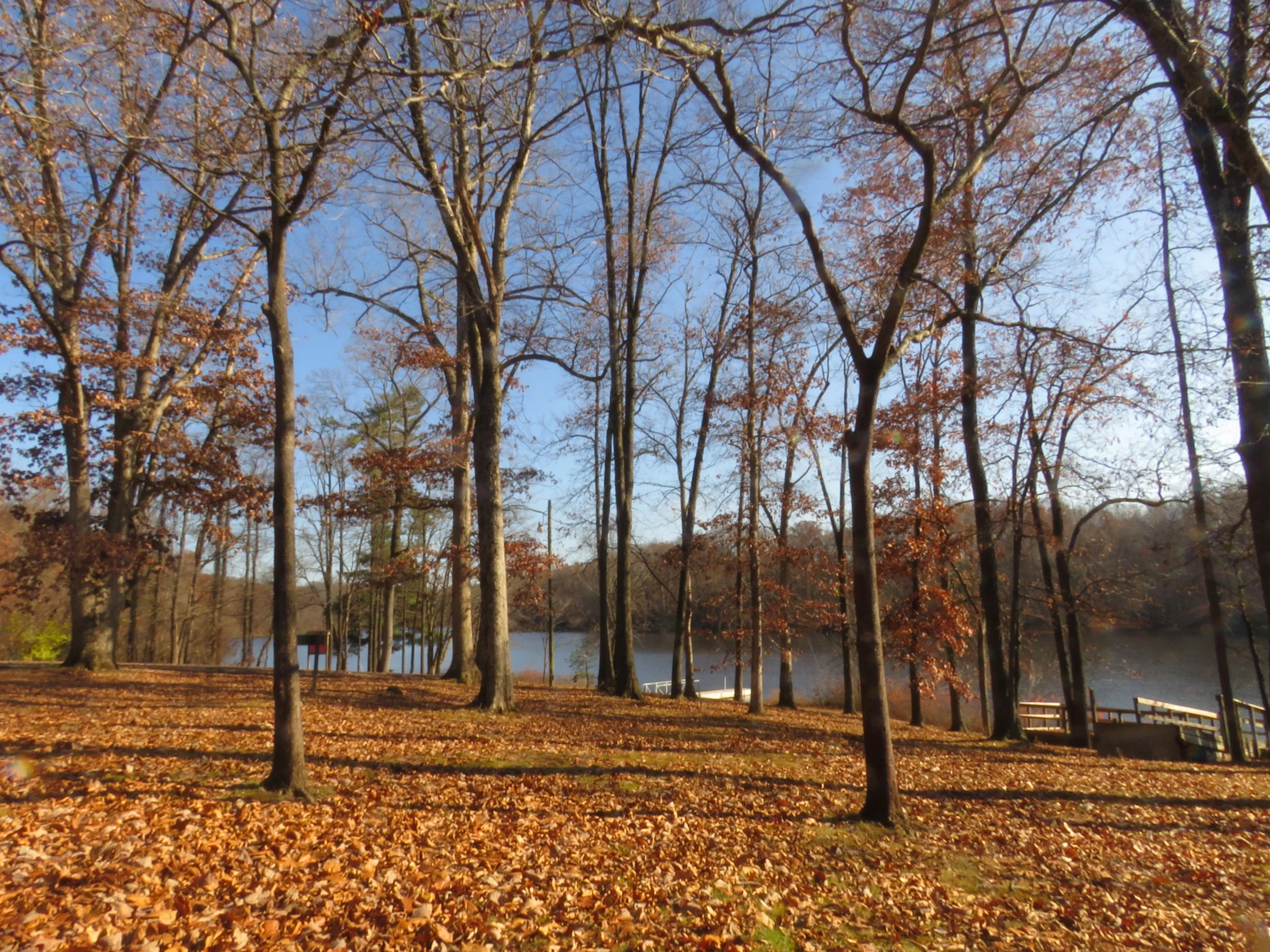 November 23, 2025 The leaves now cover the ground rather than the view from our picnic spot under the oak trees in Shakamak State Park near Terre Haute, Indiana.