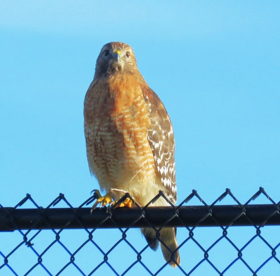 December 16, 2018. I took nine photos of a red-shouldered hawk sitting on a fence next to a ball field in Terre Haute.