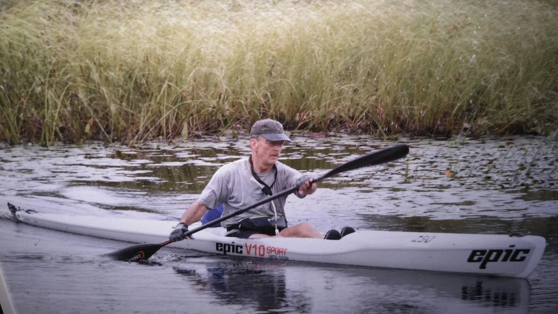 He lives off-grid in a lakeside cabin, drives an electric car, and enjoys snowshoeing, X-C skiing, jogging, and bicycling, but currently his primary outdoor passion is kayak racing.